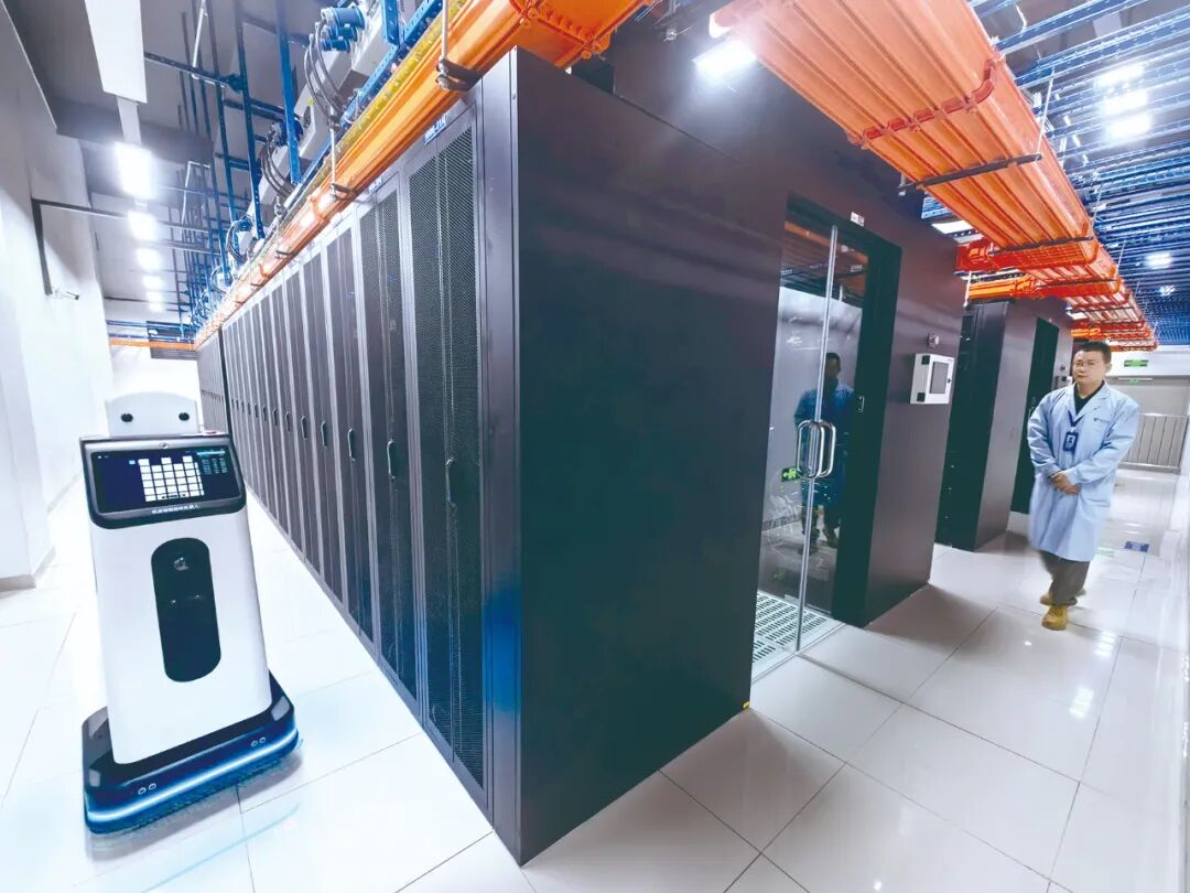 数字化对经济社会发展的驱动引领作用日益凸显,持续迸发新动能。图为近日,我国首个零碳数据中心——中国电信(国家)数字青海绿色大数据中心内,机器人正在机房巡检。图片来源:视觉中国