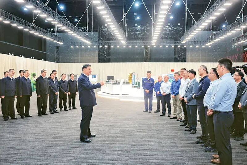 2024年10月17日至18日,中共中央总书记、国家主席、中央军委主席习近平在安徽考察。这是17日下午,习近平在合肥滨湖科学城考察时,同现场科研人员和企业负责人亲切交流。新华社记者 鞠鹏 摄